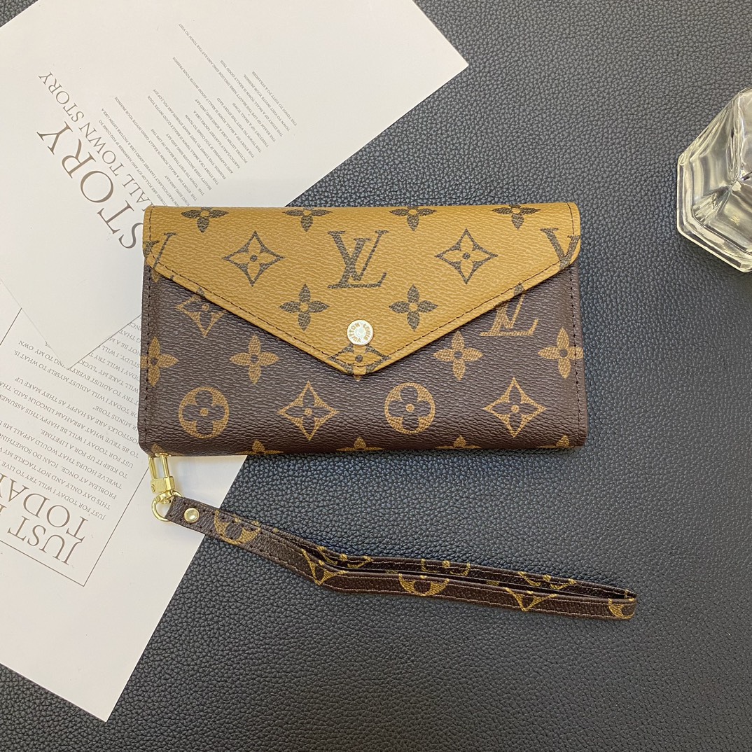 LV Louis Vuitton ブラウン エンボス加工 小柄モノグラム 封筒スタイル 電話ケース zm